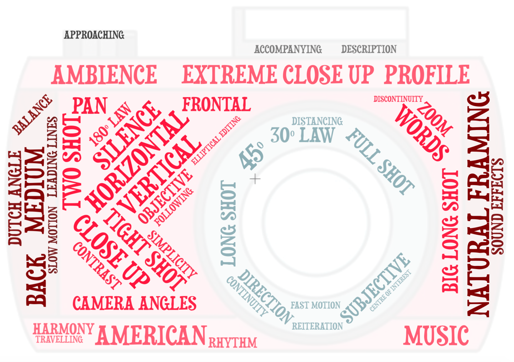 This word cloud includes all the concepts that we have been working with during the fundaments of audiovisual communication's sessions (1 and 2). Therefore, I have chosen a camera as a template because I believe it is the picture that suits best in here.
